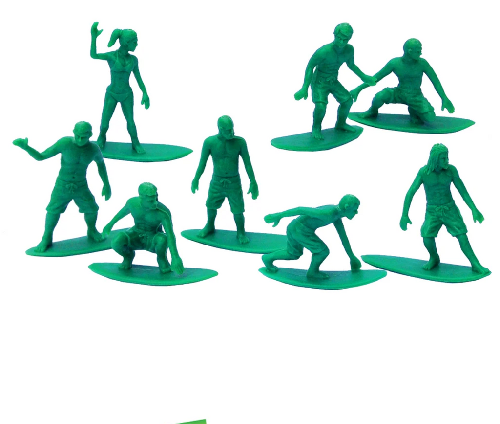 Playing 'army' with toy soldiers is so passe. The modern time killer chooses surfing armies (like you might find at the Inlet on a big day) or, if you're so inclined, you can pit your surfers against skaters & snowboarders. We've got bags of these crazy kids, 24 characters per $5.99 bag of Toy Boarders.