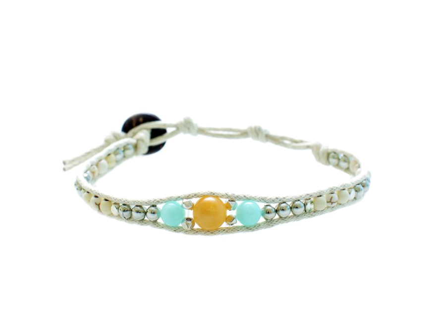 Lotus and Luna bracelets are handcrafted in Thailand by talented female artisans. Our bracelets are made with cotton cords, coconut shell clasps, semi-precious stones, and lots of positive vibes. Each bracelet has three different size options, so adjust to your perfect fit and snip off any excess cord.