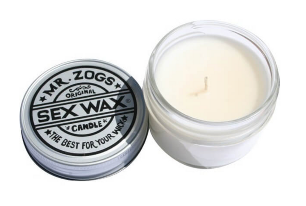 Nothing sets the mood like a Mr. Zog's Sexwax Candle. Available in your favorite Zog's surfboard wax scents, Coconut, Strawberry, or Grape. These candles have lead free wicks and are contained within a 4 ounce clear glass jar. Sexwax Candles provide a long lasting flame for up to 30 hours or more.