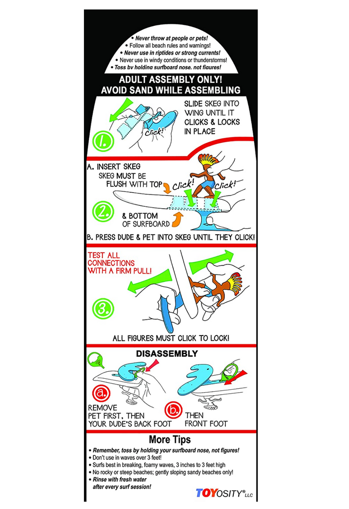 - Multiple Surfer Dudes Classics to choose from! Includes Dude, wing, skeg, fin key, and unsinkable surfboard